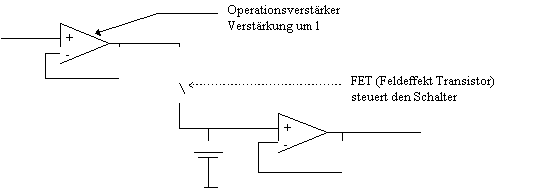 Bei geschlossenem Schalter (Samplemodus) soll sich der Kondensator möglichst schnell aufladen.