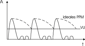 Der Zeiger wird träge gemacht, um den Pegel besser ablesen zu können. Die Anstiegszeit bestimmt, ob es sich um ein VU-Meter oder um ein PPM handelt.