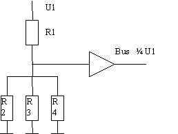 Abhilfe schafft ein Knotenpunktverstärker oder 0-Ohm Verstärker. In der obigen Zeichnung sieht man einen Knotenpunktverstärker am Bus. Der Knotenpunktverstärker ist maßgebend für die Qualität eines Mischpultes.
