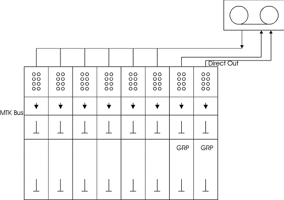 Beim drücken von DIRECT OUT wird die Leitung zur Bandmaschine unterbrochen und direkt nach dem Fader abgegriffen. Mit der "leeren" Leitung bildet man eine neue Subgruppe. So kann man eine Gesangsstimme aufnehmen ohne Verwendung der Busse.