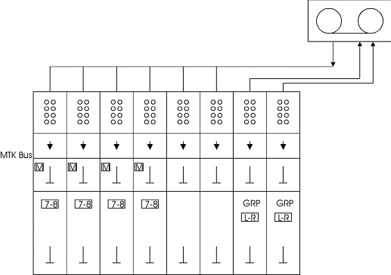 In diesem Beispiel werden die Kanäle 1-6 auf 7-8 geroutet. Bei Kanal 7-8 muß GRP gedrückt werden, um die Subgruppe zu aktivieren.